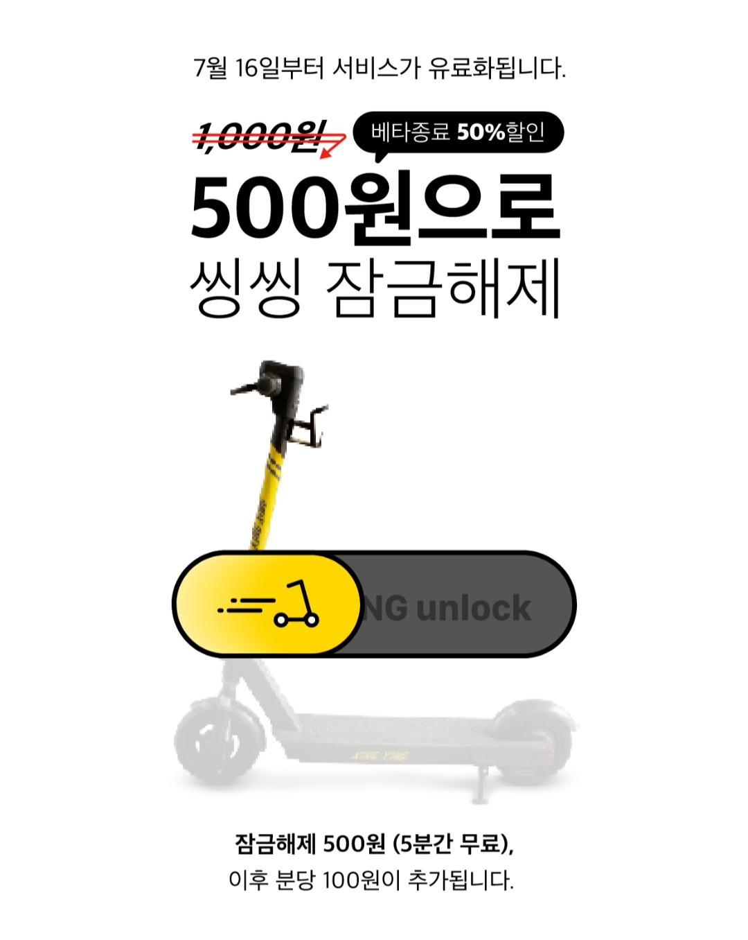 - 국내 최초 전동킥보드 공유 서비스(2018년 9월쯤)