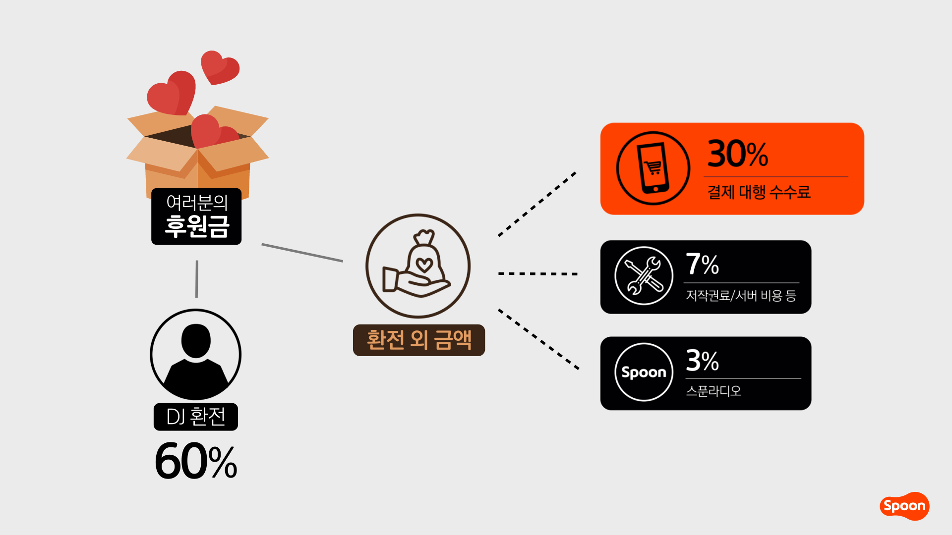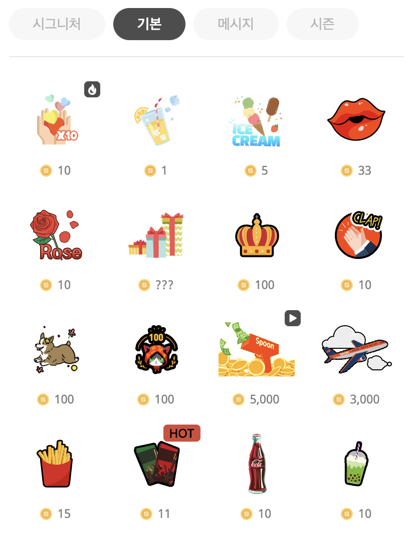 - 스푼으로 스티커 및 애니메이션 아이템을 구매해서 DJ 에게 후원한다.