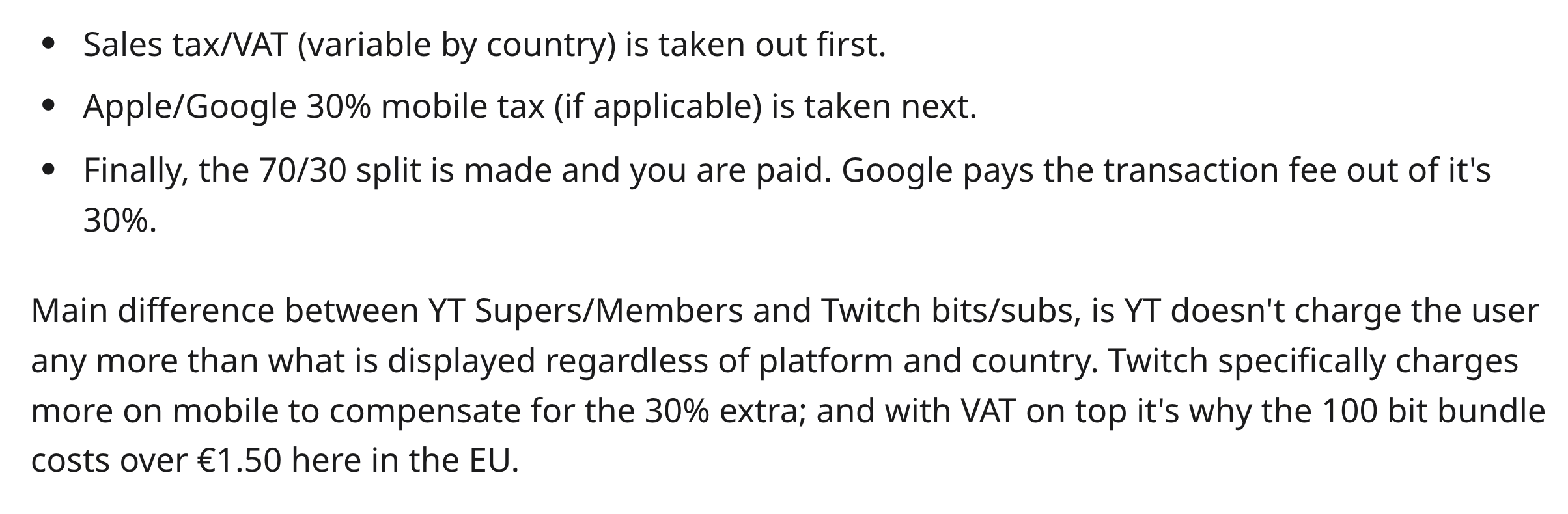 - 수수료 : 기본적으로 비트(20%), 정기구독(50%) 에서 국가별 세금과 USD -> KRW 환전 수수료 등 추가적으로 발생한다.