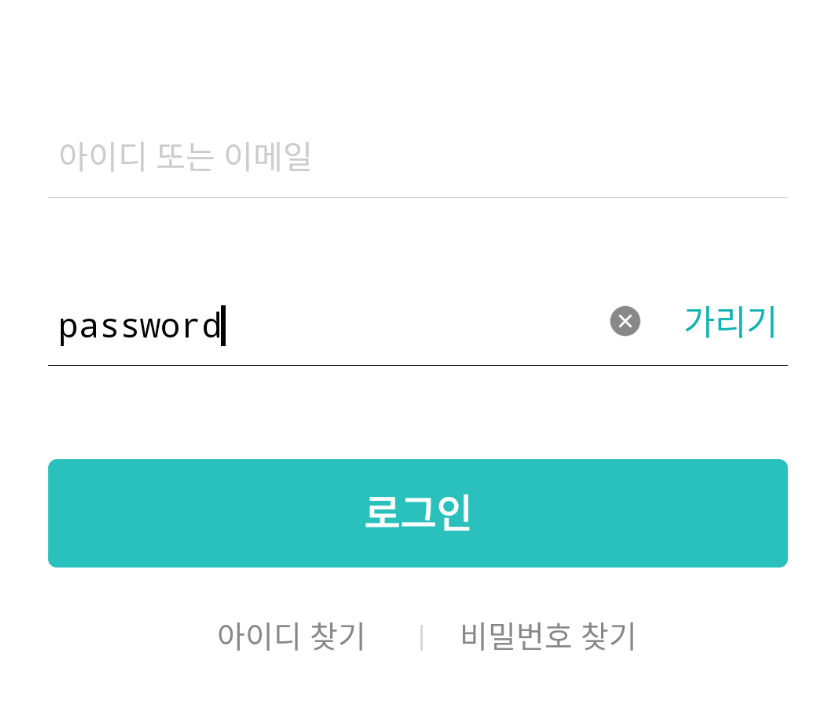 비밀번호 텍스트를 보이게 하는 처리를 구현하기 위해서 다른 앱들을 찾아봤는데, 서비스마다 아이콘 사용 방식, 텍스트 보이게 하는 처리가 서비스마다 제각각임을 알게 됐다.