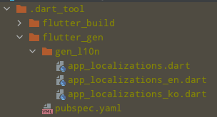 - flutter generate 설정을 true 했기 때문에 빌드하면 .dart_tool/flutter_gen 폴더 아래에 l10n 관련한 localiaztions 파일들이 생성된다.