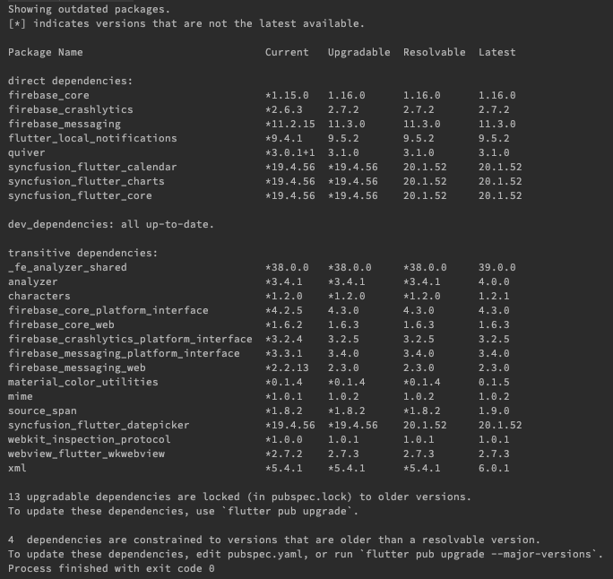 $flutter pub outdated