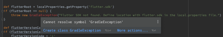 Flutter 에서 build.gradle 에서 GradleException 이 빨갛게 표시가 되어서 매우 거슬릴 수 있습니다.