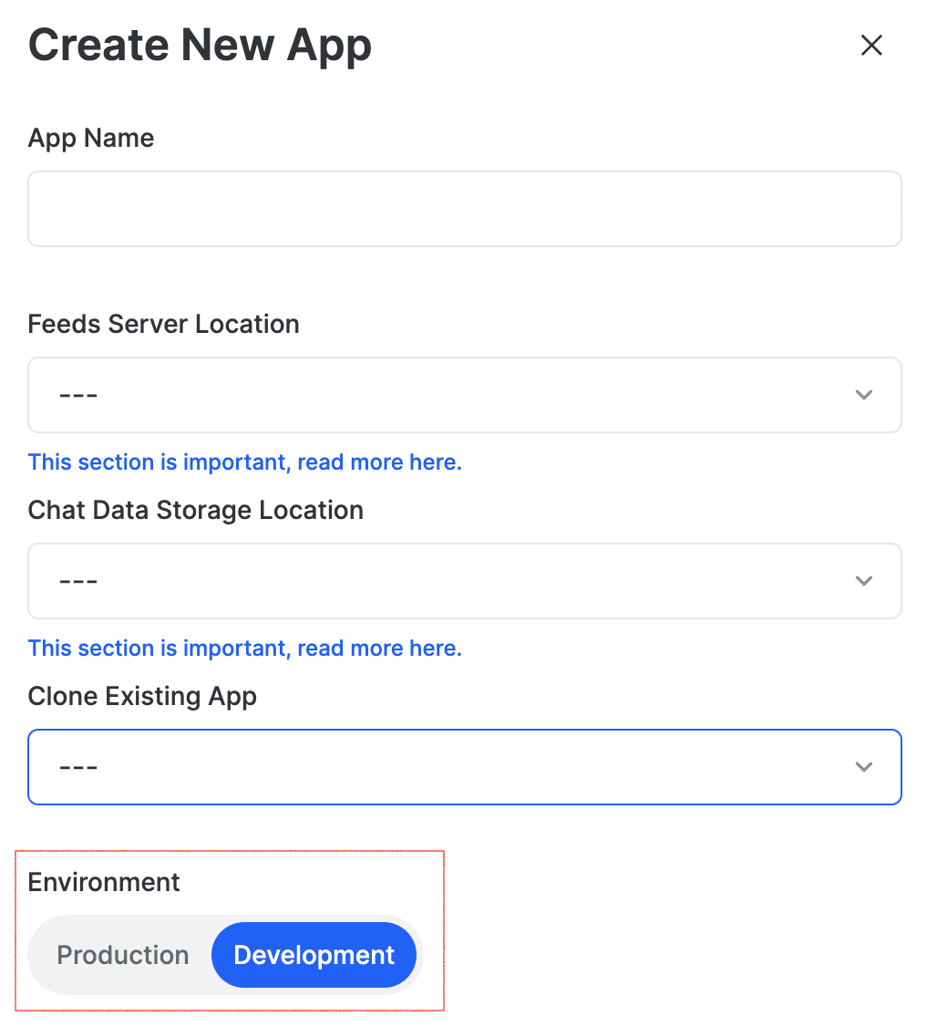 앱 환경에 따라서 모바일에서 채팅을 구현할때 Token 필요 여부가 정해집니다. Development 환경으로 셋팅을 하면 Token 을 실제 생성하지 않아도 테스트를 할 수 있습니다. Production 환경 으로 앱을 셋팅하면 반드시 모바일에서 Stream 에 연결할때 Token 이 있어야만 연결할 수 있습니다.