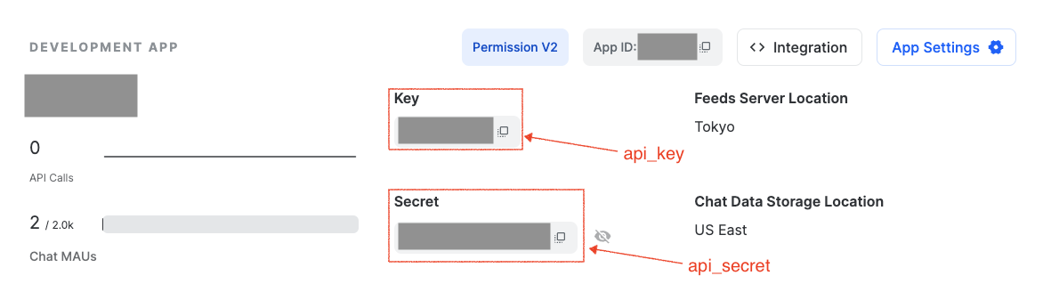 ChatClient 클래스로 Stream 서비스에 연결하기 위해서는 서버 앱 구성시 제공되는 APK KEY 와 채팅 ID 가 필요합니다. 그리고 아래 코드에 있는 token 변수 의 경우 Development 환경이라면 Token 을 생성할 필요가 없으나 Production 환경이라면 Token 이 필요 합니다.