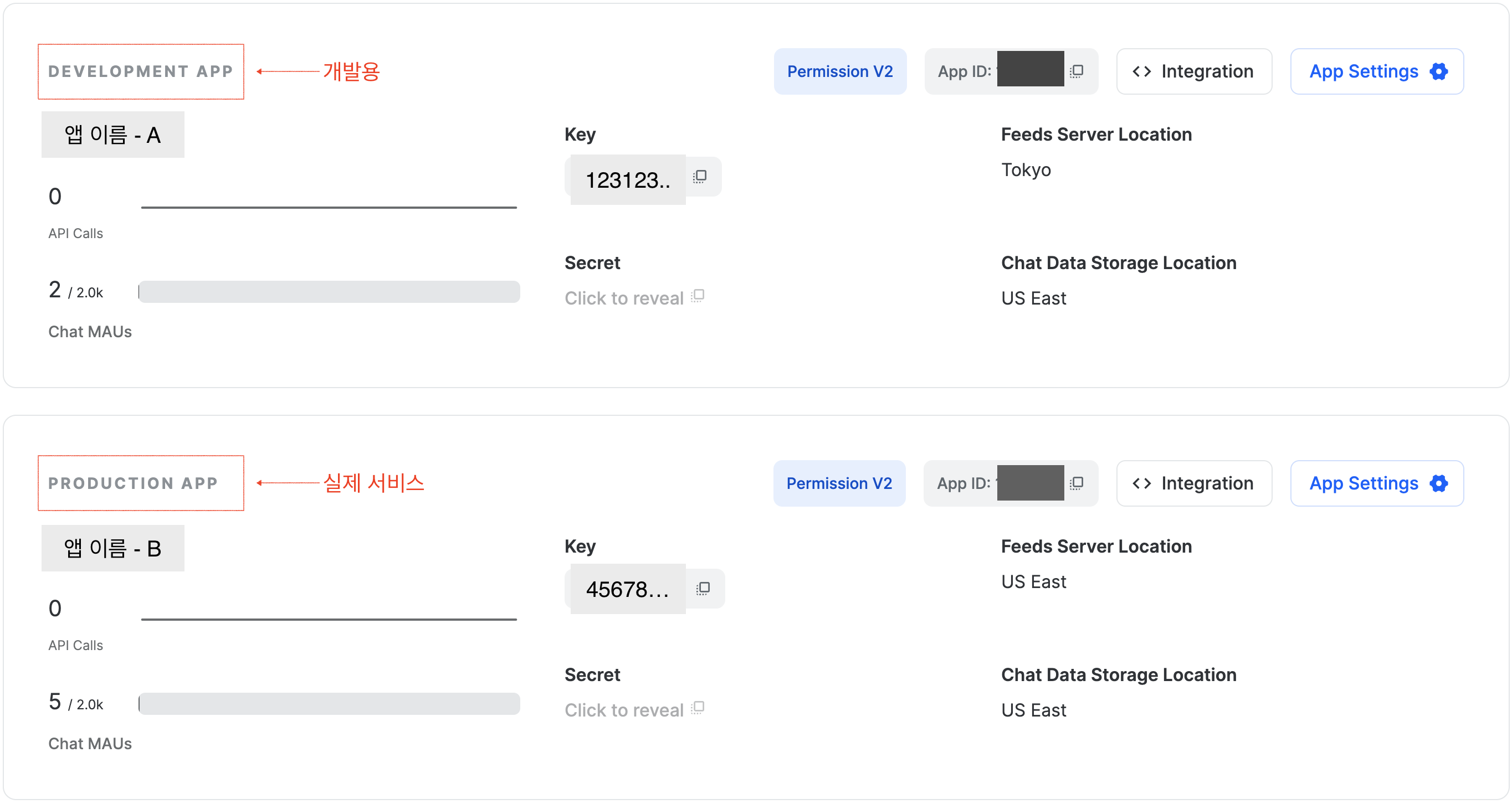 앱 생성 시 설정 환경이 PRODUCTION / DEVELOPMENT 2가지 형태가 있습니다.
