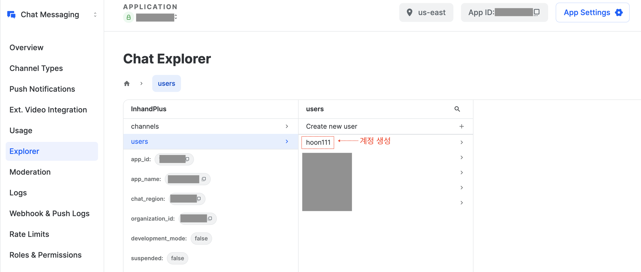 계정을 미리 생성한 경우가 아니고 생성하지 않은 ID 로 위의 프로세스대로 하고 정상적으로 ChatClient 로 연결을 했다면 아래와 같이 새로 생성한 계정을 Chat Explorer 에서 확인할 수 있습니다.