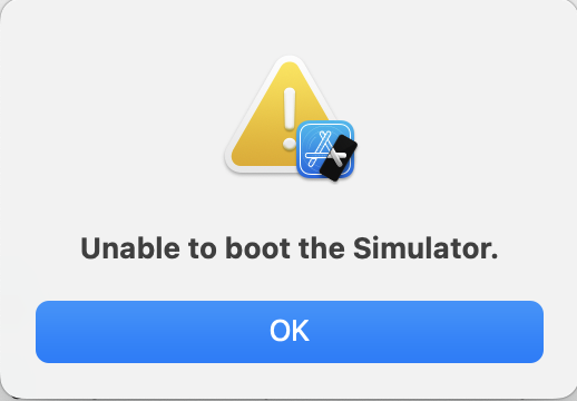 Unable to boot the Sumulator 가 발생한다면 Xcode 캐시 문제일 가능성이 높다.