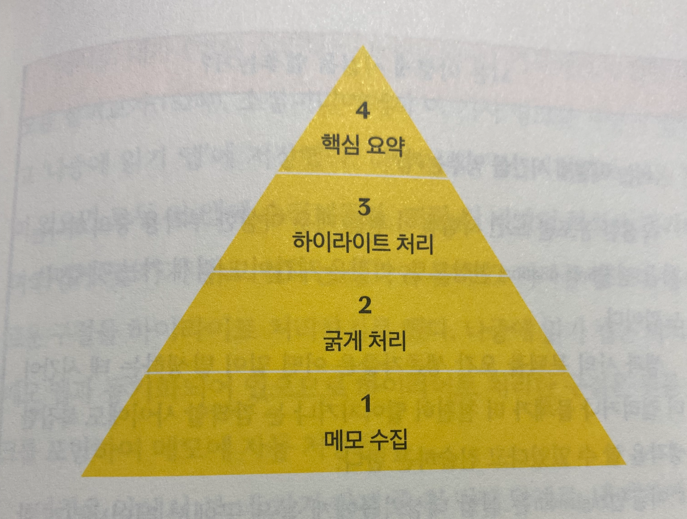 - 메모수집 -> 굵게 처리 -> 하이라이트 처리 -> 핵심 요약