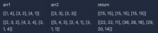 // 결과 행렬의 크기는 arr1의 행의 수 x arr2의 열의 수