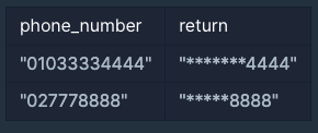 - phone_number는 길이 4 이상, 20이하인 문자열입니다.