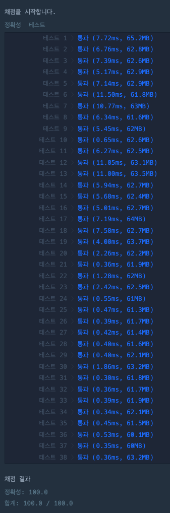 그리고 더불어서 다른 사람들의 코드도 확인해보았습니다. 역시 내장 함수를 잘 써서 만들면 이해하기도 쉽고 보기 편해보인 부분은 확실히 있었습니다. 다만, 속도가 확실히 느리다는 부분은 역시 항상 느끼는 부분입니다