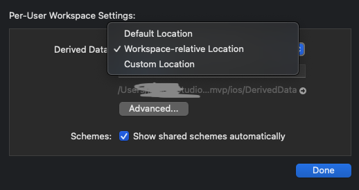 Derived Data 에서 기존에 설정된 Default Location 에서 Workspace-relatrive Location 으로 바꿔주었습니다. 그러니 드디어 빌드 성공.... 휴.... 진짜 Xcode 는 업데이트 할때마다 겁이 나네요 ㅠ