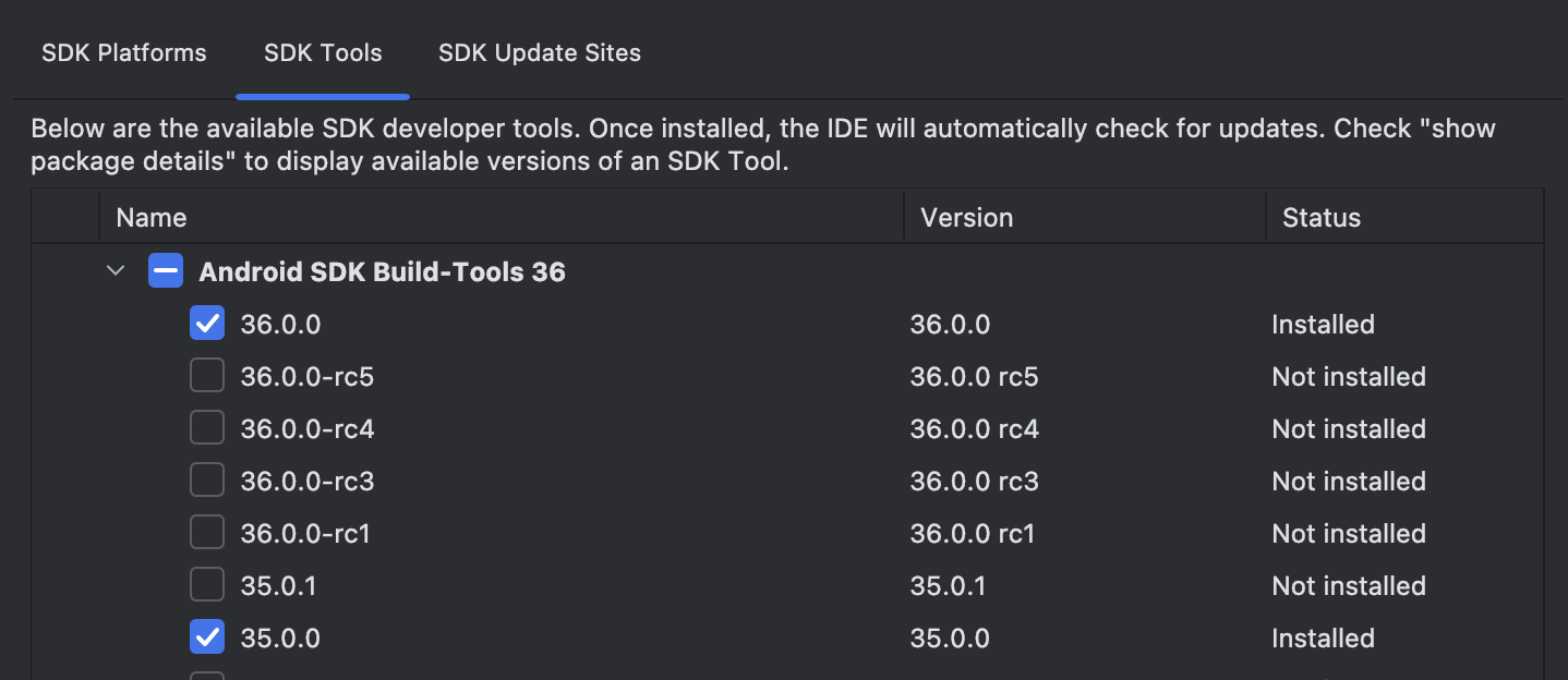 "뭐지?? 언제부터 SDK file 을 찾지 못했던거지?" 그래서 해당 경로를 따라가서 36.0.0 버전을 확인했는데 텅텅 비어있었습니다. AndroidStudio 로 SDK를 새롭게 내려받다가 뭔가가 문제가 있었던것 같습니다...
