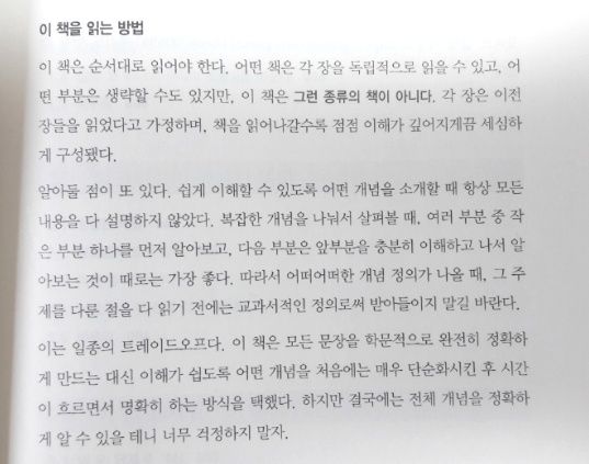 흐름에 따라 구성된 책이기에 '이 책을 읽는 방법'을 참고하고 그대로 읽는게 좋은것 같습니다.