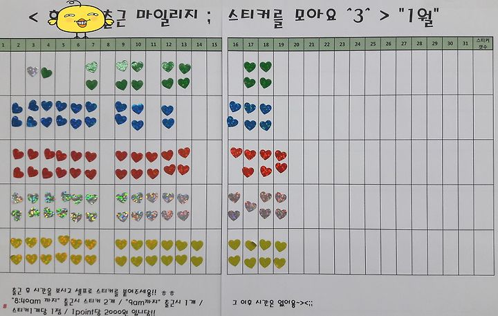참 이상하게도 보상제도가 도입되고 지금까지 2주 정도가 흘렀는데, 딱 한번 8시 45분에 와서 스티커 1개 받은거 말고는 8시 30분에서 8시 40분 사이에 도착을 하게 되었습니다. 스티커로 인한 보상은 크지는 않지만 뭔가 욕심이 생겼습니다. 다른 직원들에게 붙은 참 잘했어요 스티커로 인해서 묘하게 경쟁심리도 발동되었구요.(저만 그런지도 모르지만요ㅋ)
