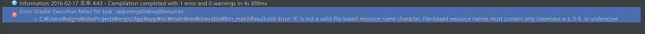 해당 drawable 폴더에서 보듯이 btn_matchResult.xml 이라고 uppercase 를 썻기에 에러가 발생했습니다.